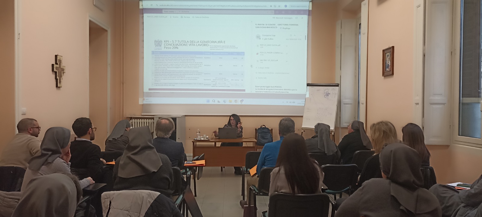 Nel pomeriggio, con l’intervento dell’avvocato Giuseppina Urgo dello Studio Montemarano, lo sguardo si è allargato ulteriormente verso il tema della Parità di Genere UNI/PDR125, in vista della certificazione dei tre Enti dell’Ispettoria. Anche qui, non si è trattato solo di un adempimento normativo, ma di una scelta culturale e carismatica: promuovere ambienti di lavoro sempre più giusti, trasparenti e rispettosi della dignità di ciascuno.