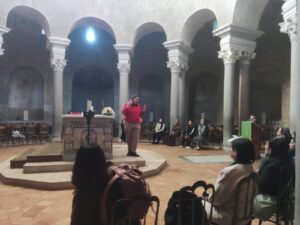 La visita alla Specola Vaticana è stata un’esperienza di intensa contemplazione. Accompagnati da don Matteo Galaverni, astrofisico e ricercatore della Specola, i partecipanti hanno potuto lasciarsi stupire dalle meraviglie dell’universo, avvertendo insieme la propria piccolezza di fronte all’immensità del cosmo e la grandezza di un Dio creatore che, pur reggendo le galassie, sceglie di farsi vicino e incarnarsi per amore delle sue creature. Don Matteo ha saputo intrecciare con finezza il rigore della ricerca scientifica con una profonda lettura spirituale, conducendo l’ascolto in un clima di stupore, gratitudine e silenziosa adorazione.