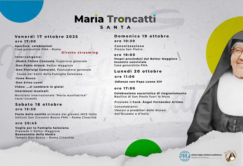 In questo orizzonte missionario, la canonizzazione di suor Maria Troncatti, che si celebrerà a Roma il 19 ottobre 2025, si presenta come un segno di grazia per tutto l’Istituto e per la Famiglia Salesiana nel mondo.